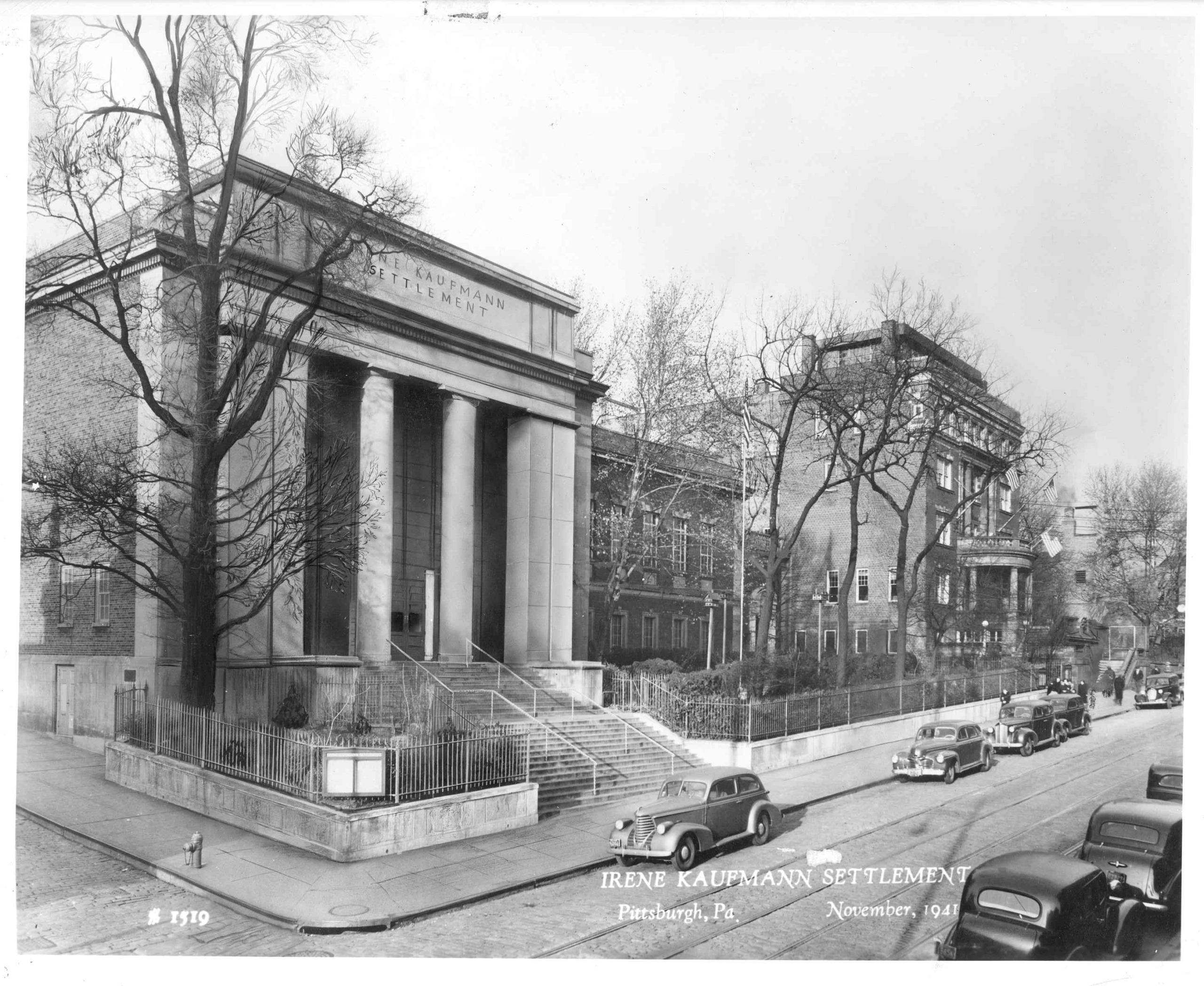 Back and white photo of the Irene Kaufmann Settlement from 1941