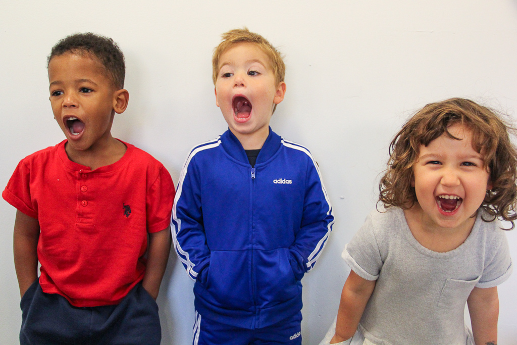 Three young children looking excited