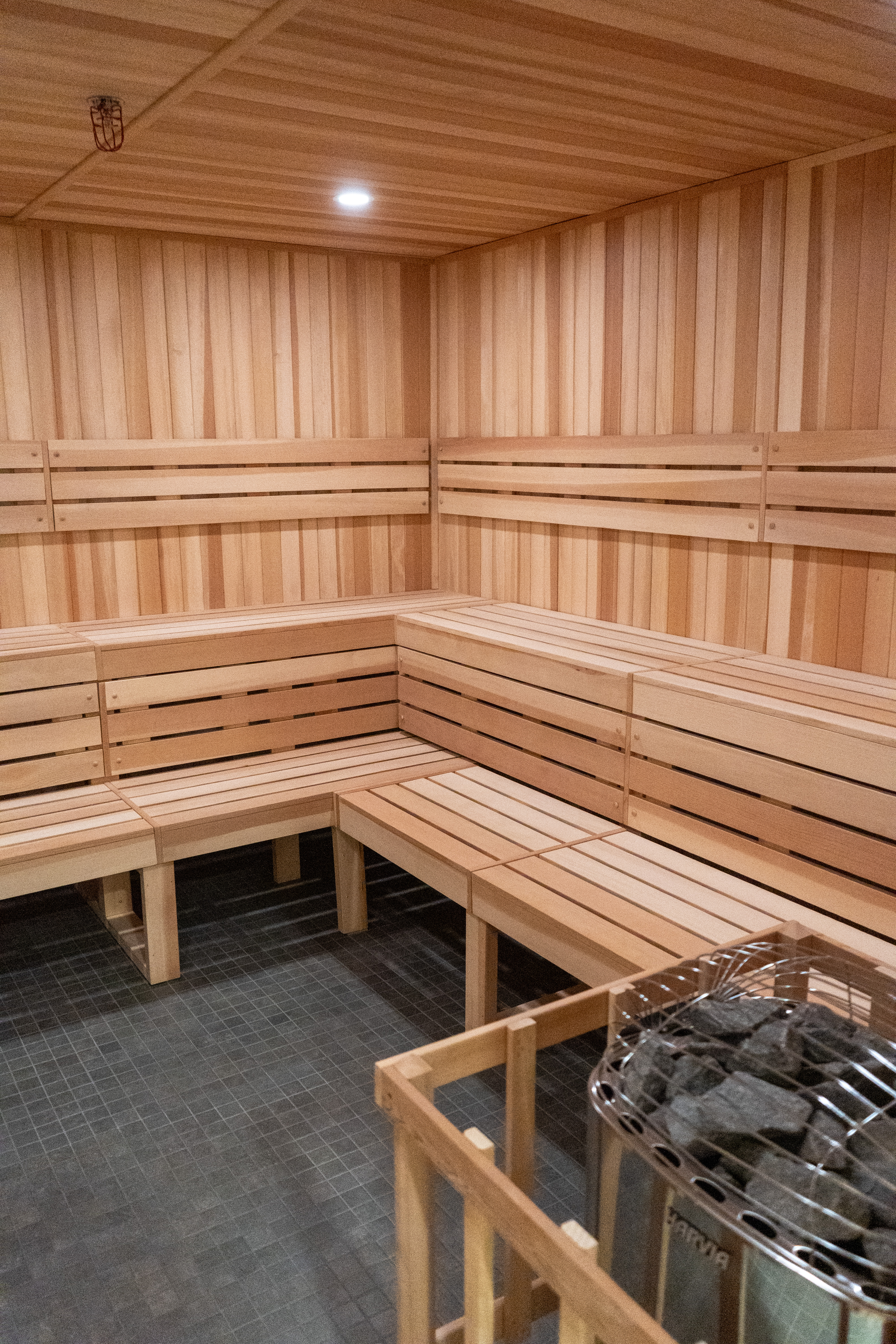 •Adults-only spa-style locker rooms with sauna,