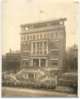The Columbian School and Settlement accepts gift from Mr. and Mrs. Henry Kaufmann of a new building as a memorial to their daughter, Irene. The agency is renamed the Irene Kaufmann Settlement, affectionately known as the IKS.